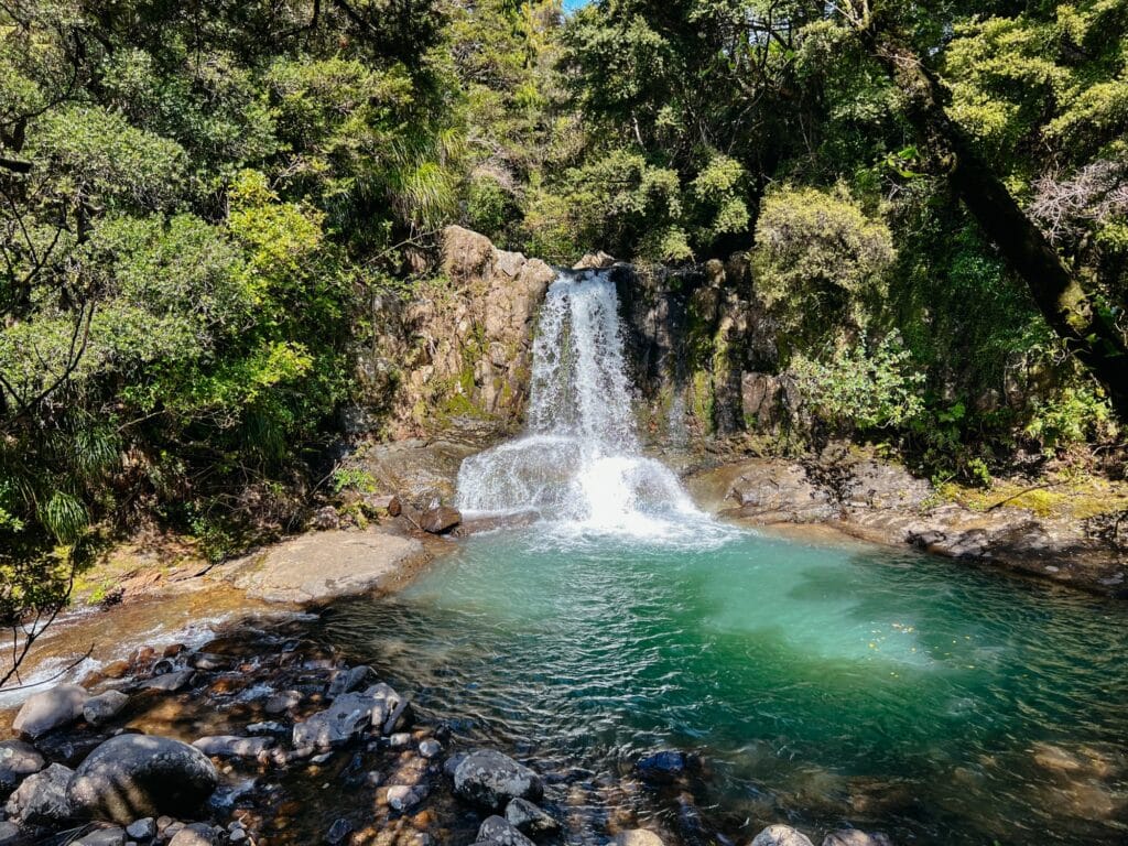 Ein weiteres Highlight im Landesinneren der Coromandel Peninsula sind die Waiau Falls, ein kleiner Wasserfall mit einem erfrischenden Becken, in dem man sogar Schwimmen gehen kann.
